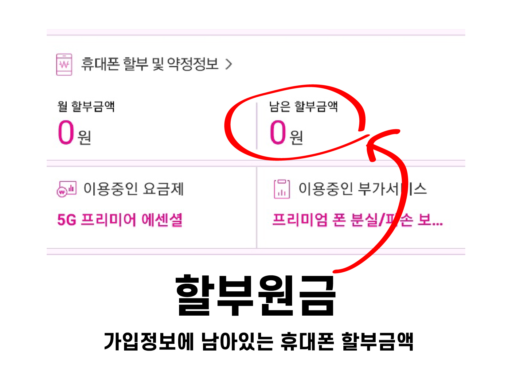 통신사 할부원금에 남아있는 금액이 실제로 구매한 휴대폰 값이라 할 수 있습니다.