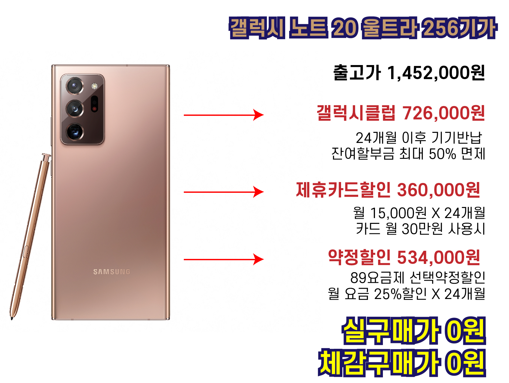 LG 유플러스에서 출고가 1,452,000원의 갤럭시 노트20 울트라 256기가를 85,000원 요금제로 개통했다면