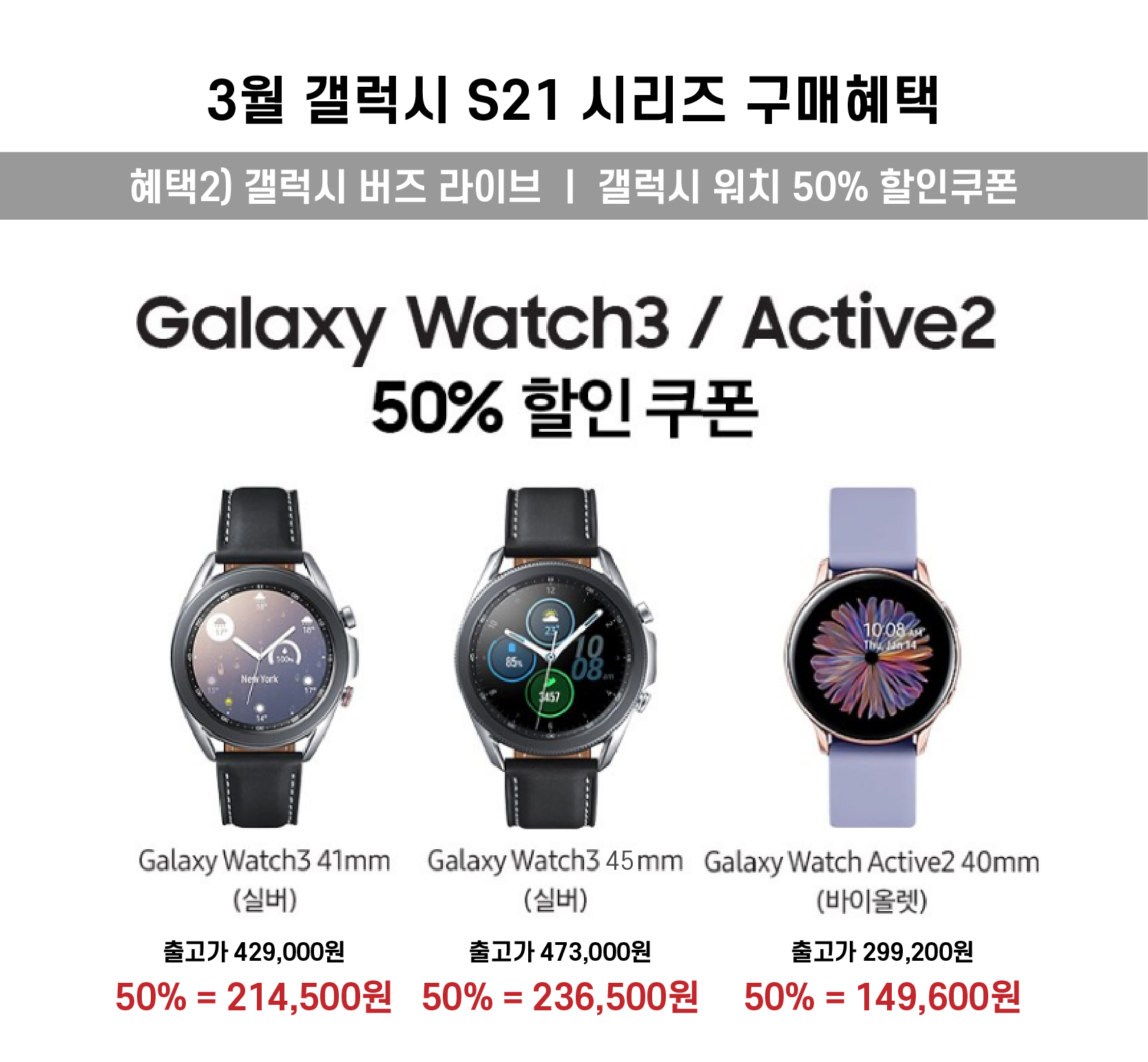- 갤럭시 워치3, 액티브 2 50% 할인쿠폰