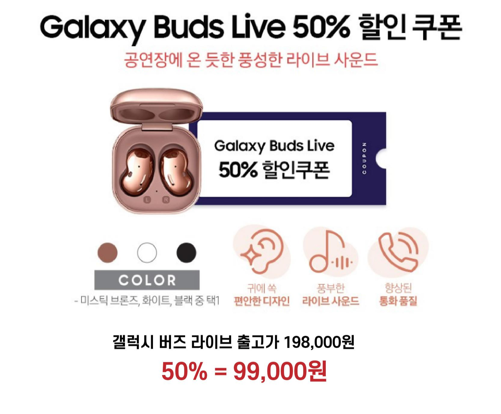 갤럭시 버즈 라이브 50% 할인쿠폰 과