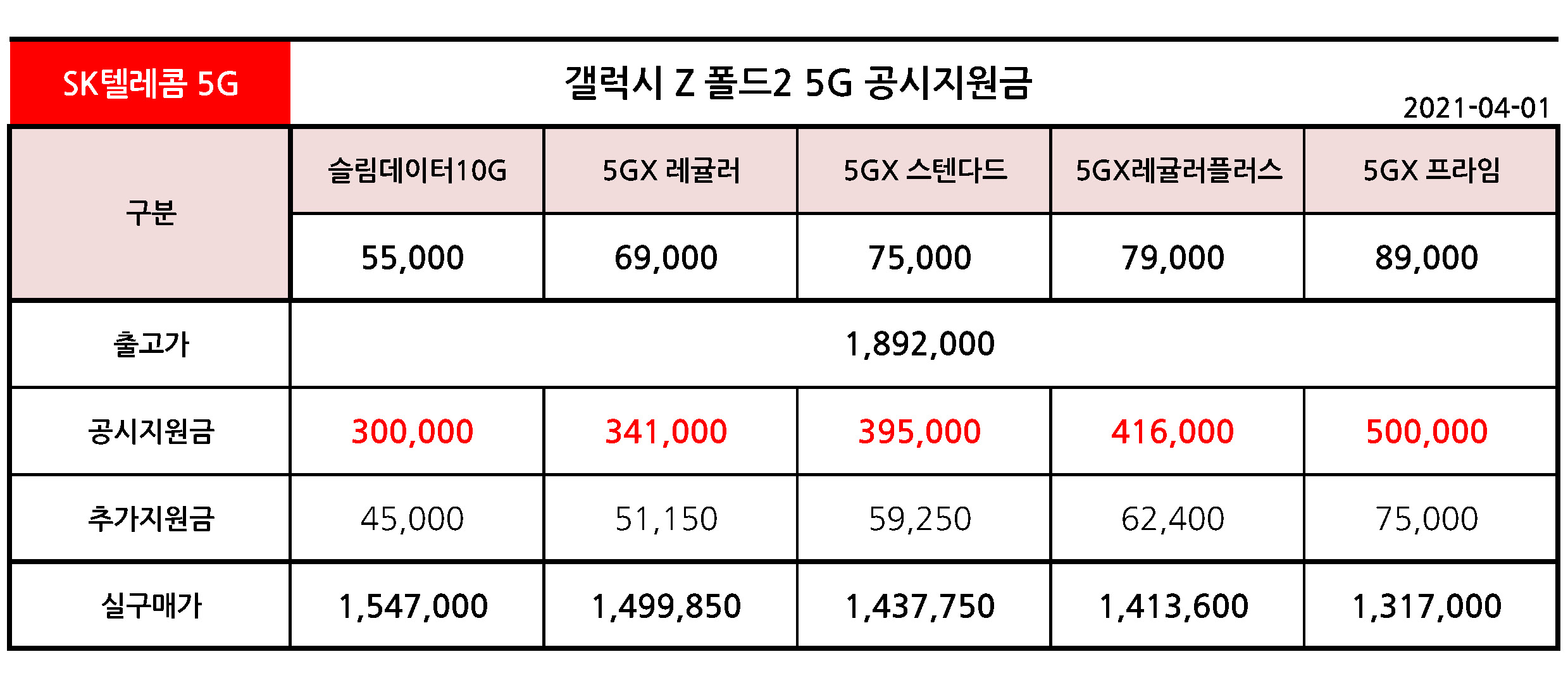 - SK텔레콤 갤럭시 Z 폴드2 공시지원금