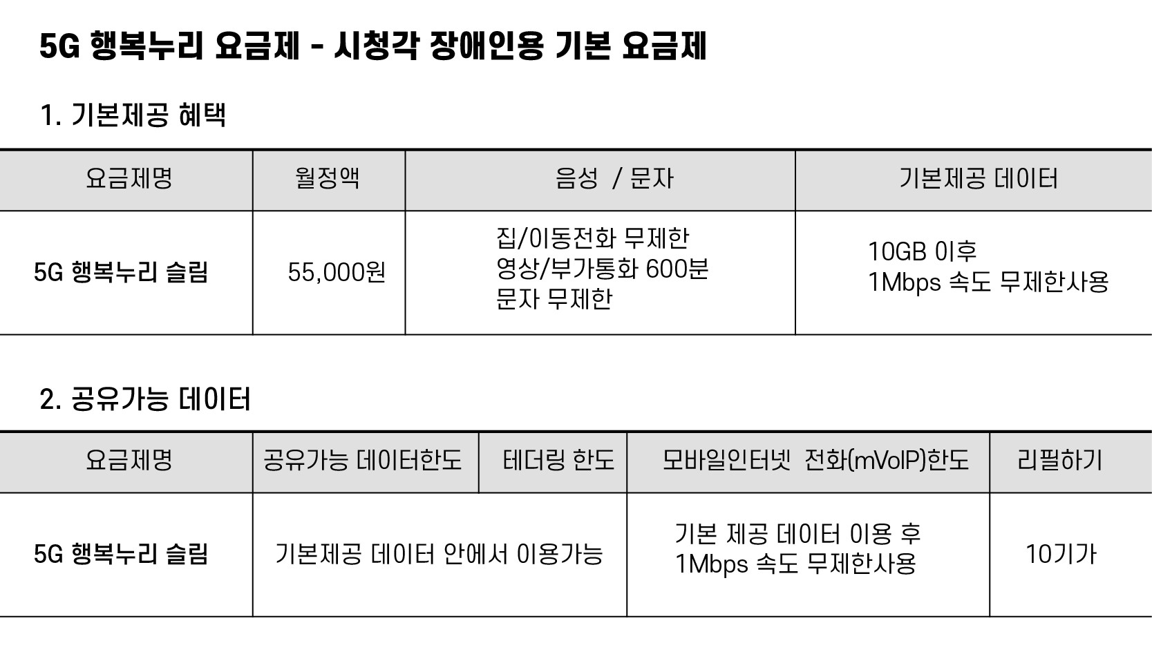 SK텔레콤 5G 행복누리 시청각장애인 신규요금제 출시