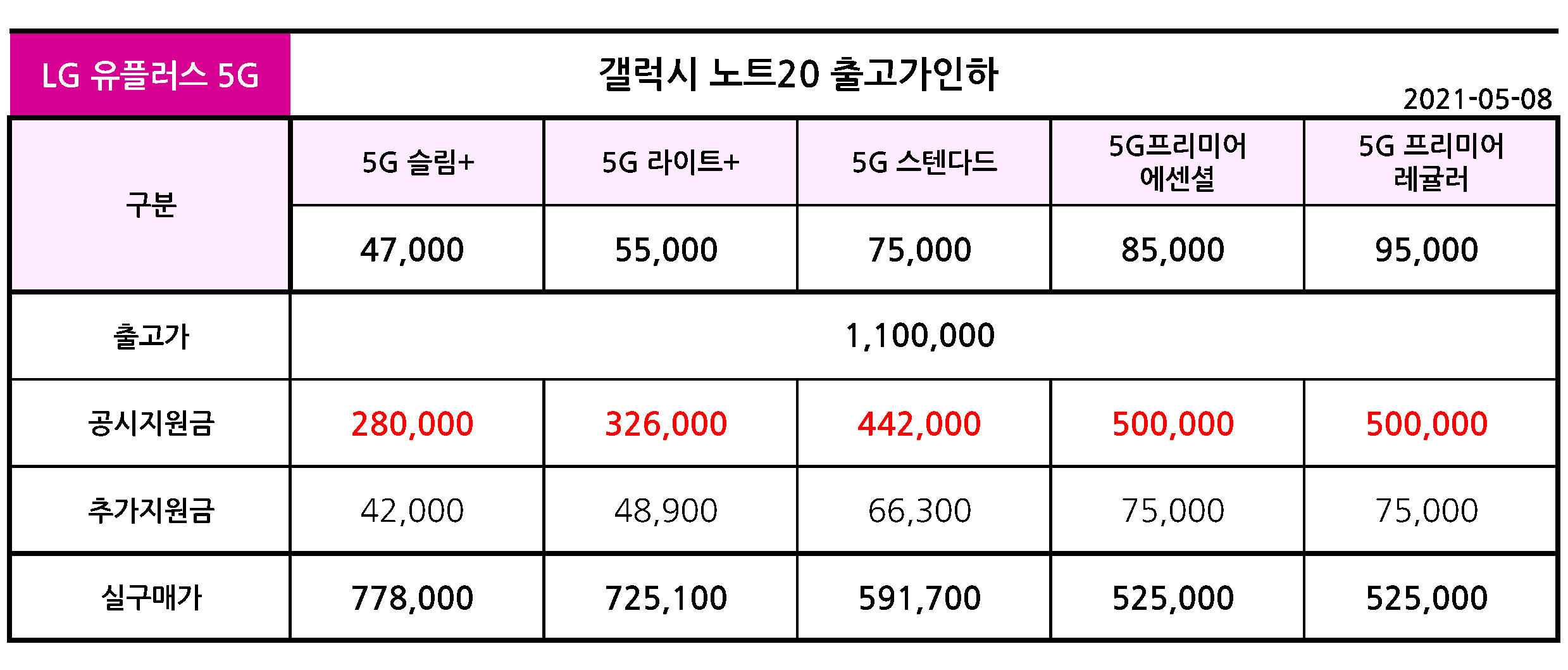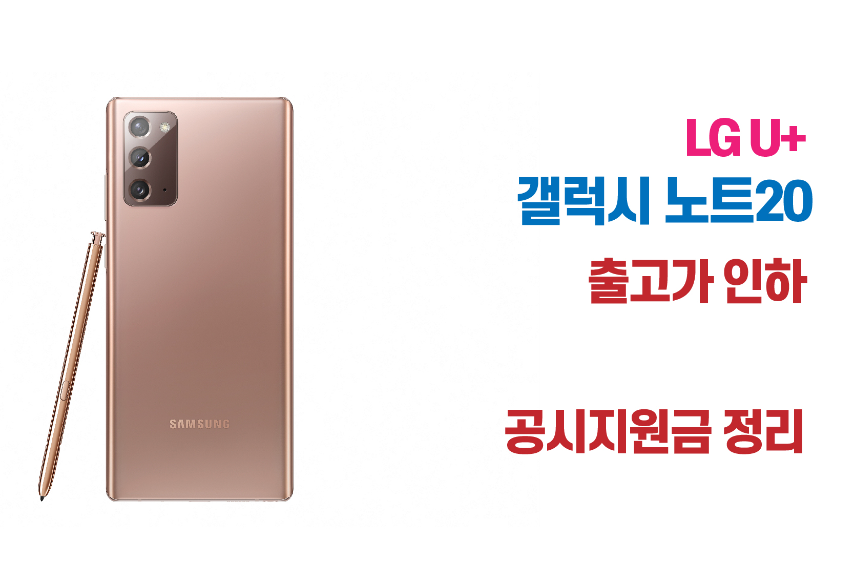 갤럭시 노트20 출고가 인하후 공시지원금 & 실구매가 - LG 유플러스 5월 8일