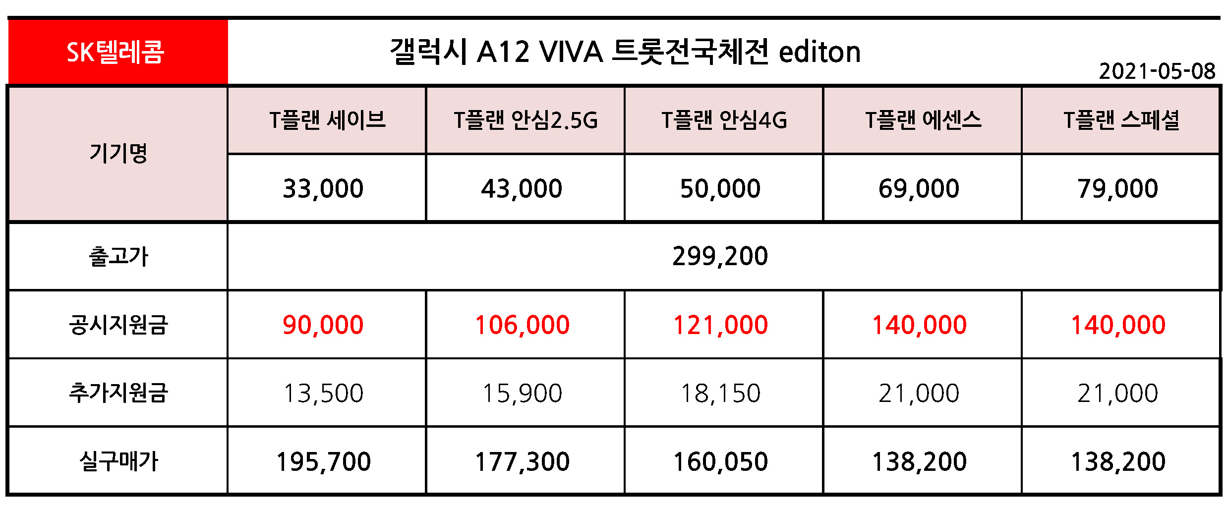 공시지원금은 SK텔레콤에서 보급형 기기에 기본적으로 제공하는 정도의 공시지원금을 지원하고 있습니다.