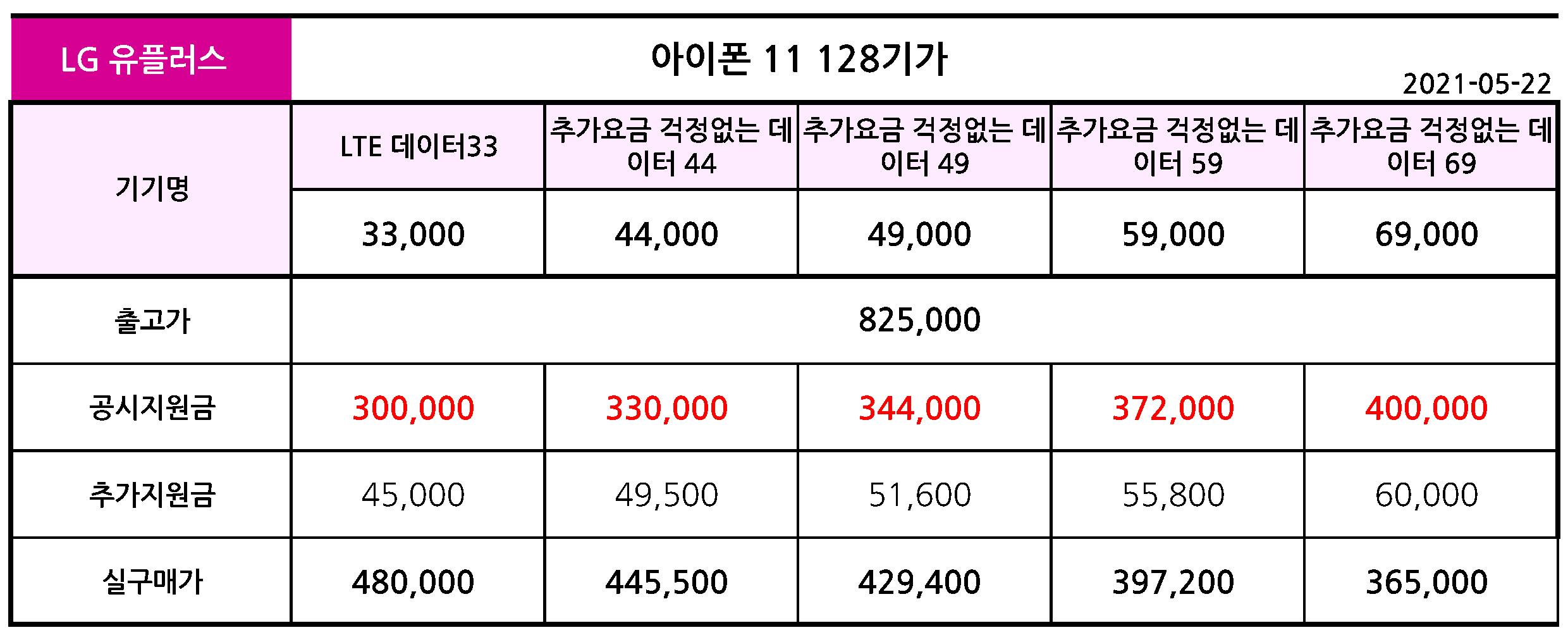 아이폰 11 64기가, 128기가 출고가 인하, 공시지원금 상향 하였습니다. - LG 유플러스 5월 22일
