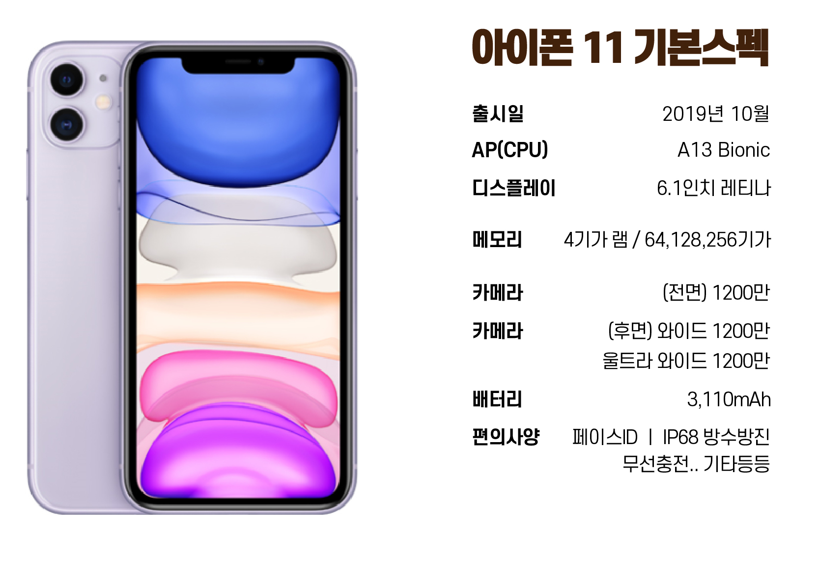 아이폰 11의 어떤 용량을 선택하는가에 따라 월 통신비가 달라지겠습니다.