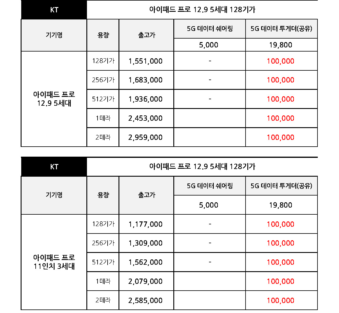 KT 아이패드 프로 12.9 5세대, 11 3세대 출고가 & 공시지원금