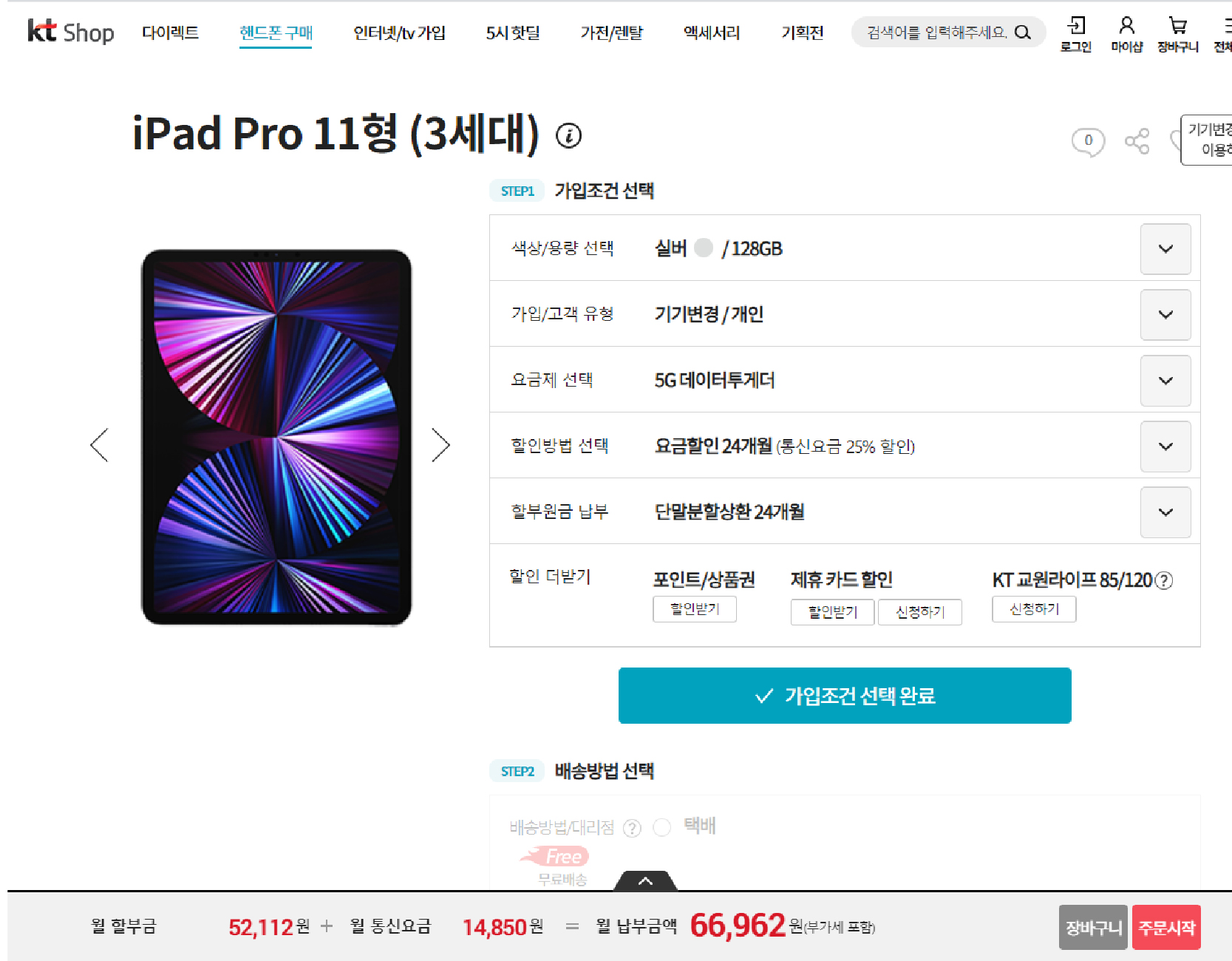 KT 올레샵 다이렉트샵 아이패드 프로 12.9 5세대, 11 3세대 구매가격(선택약정 25% 할인개통)