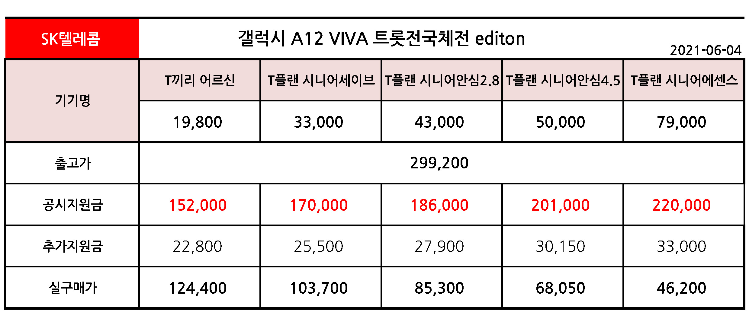 21년 6월 3일 sk텔레콤 갤럭시 A12 VIVA 트롯전국체전 editon 공시지원금이 상승하였습니다.