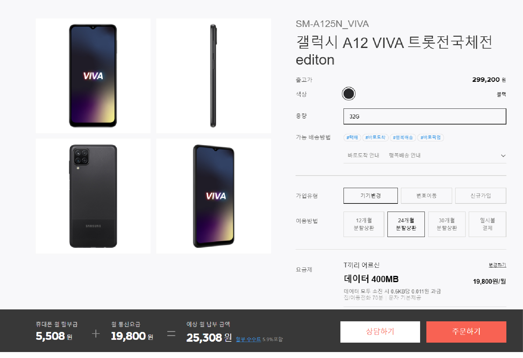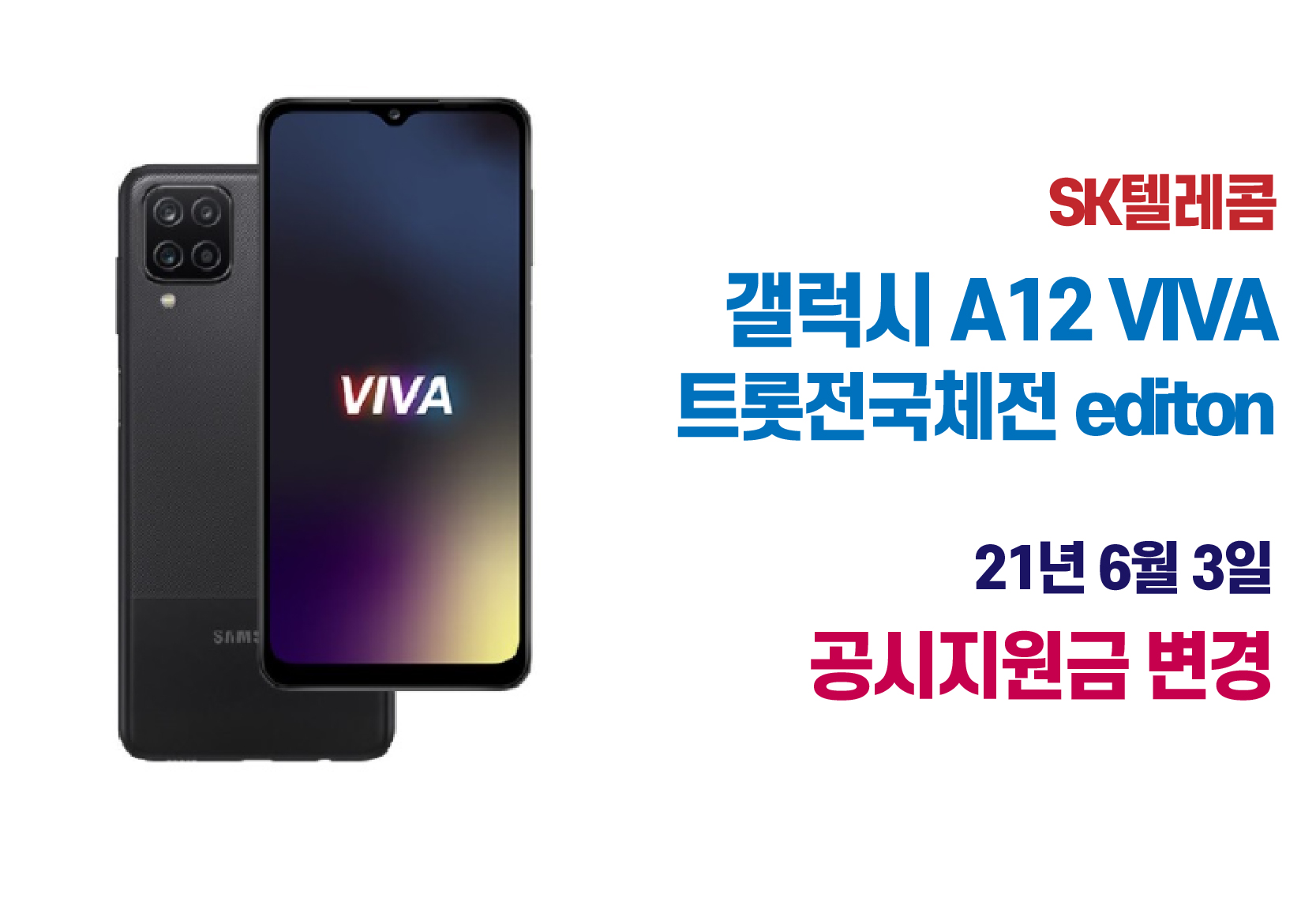 갤럭시 A12 VIVA 트롯전국체전 editon 공시지원금 상향 - sk텔레콤