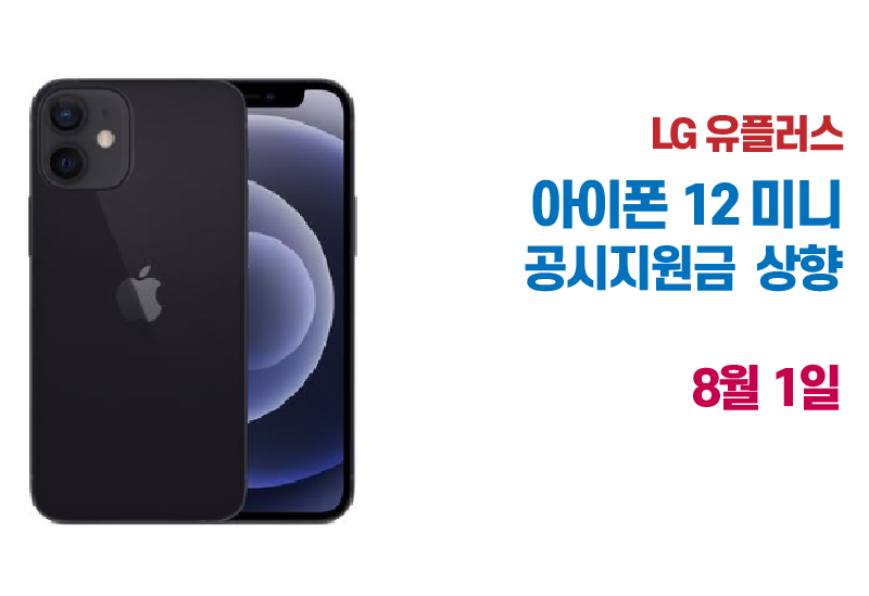 8월 1일 LG 유플러스 아이폰 12 미니의 공시지원금이 상향조정 되었습니다.