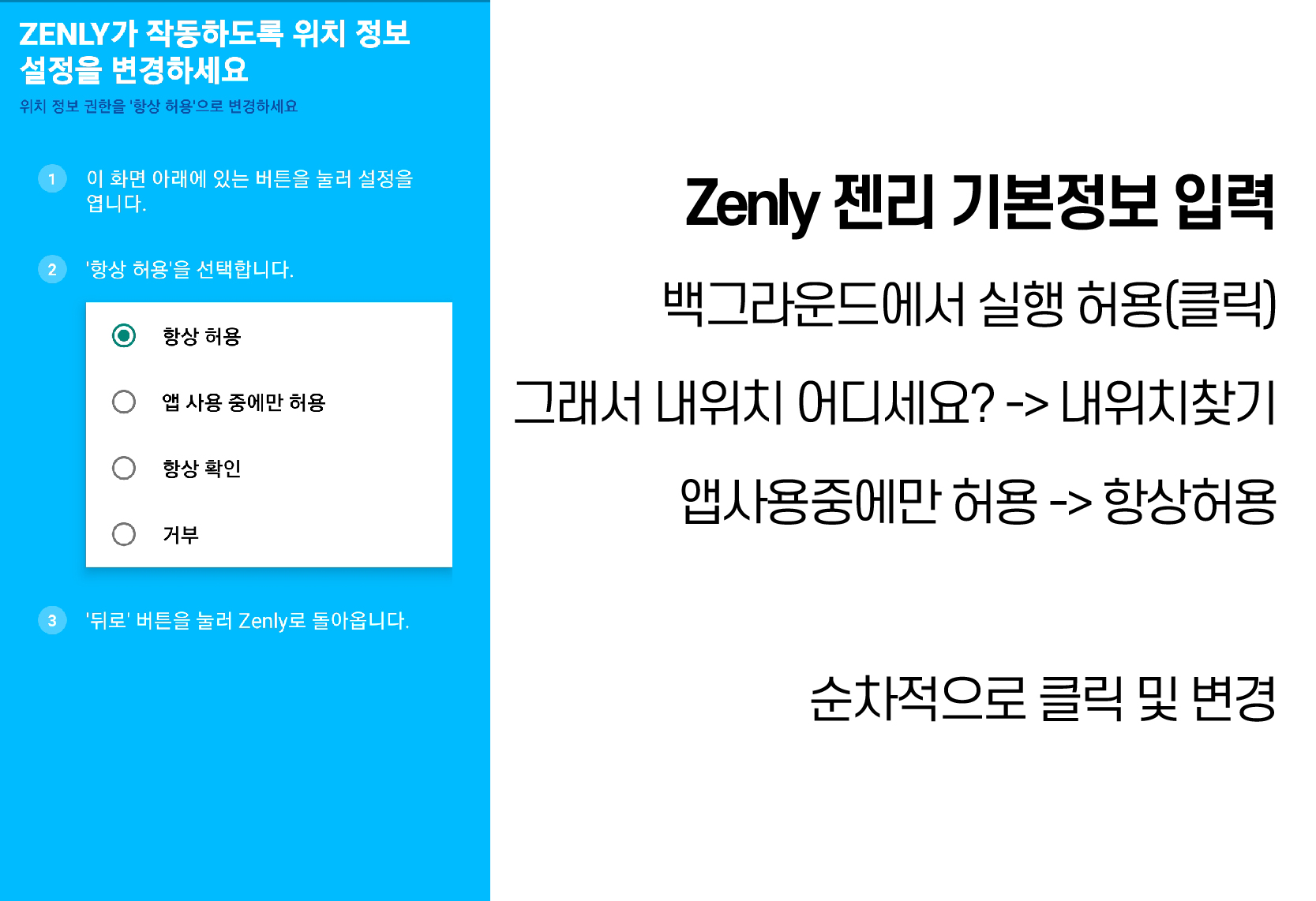 앱 사용중에만 허용 -> 항상허용(변경) 등의 과정을 거치면 가입이 완료됩니다.