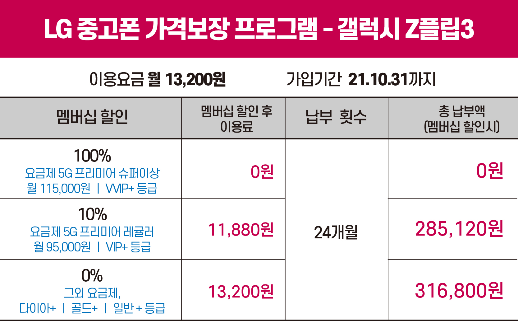 LG 유플러스 중고폰 가격보장 프로그램 갤럭시 Z플립3
