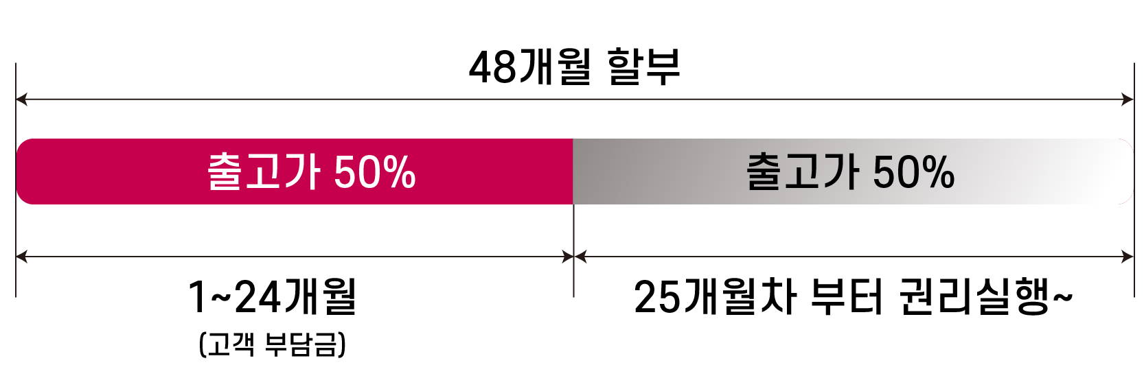 가입기간은 48개월이며, 24개월간의 할부금은 고객부담이며,