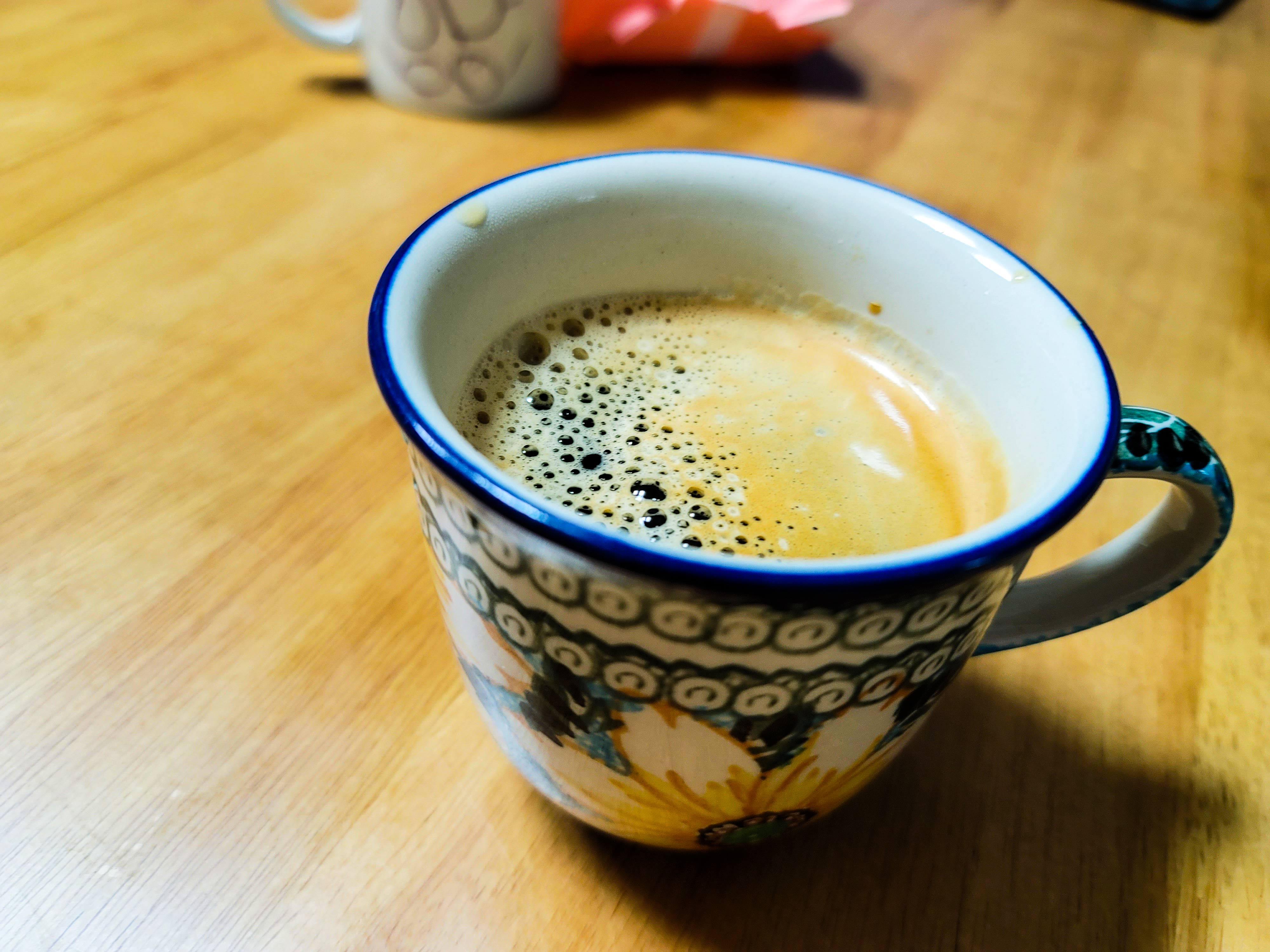 커피 샷잔이 없어서 집에 굴러다니는 호가든 맥주 미니잔을 써보고 넘쳐서
