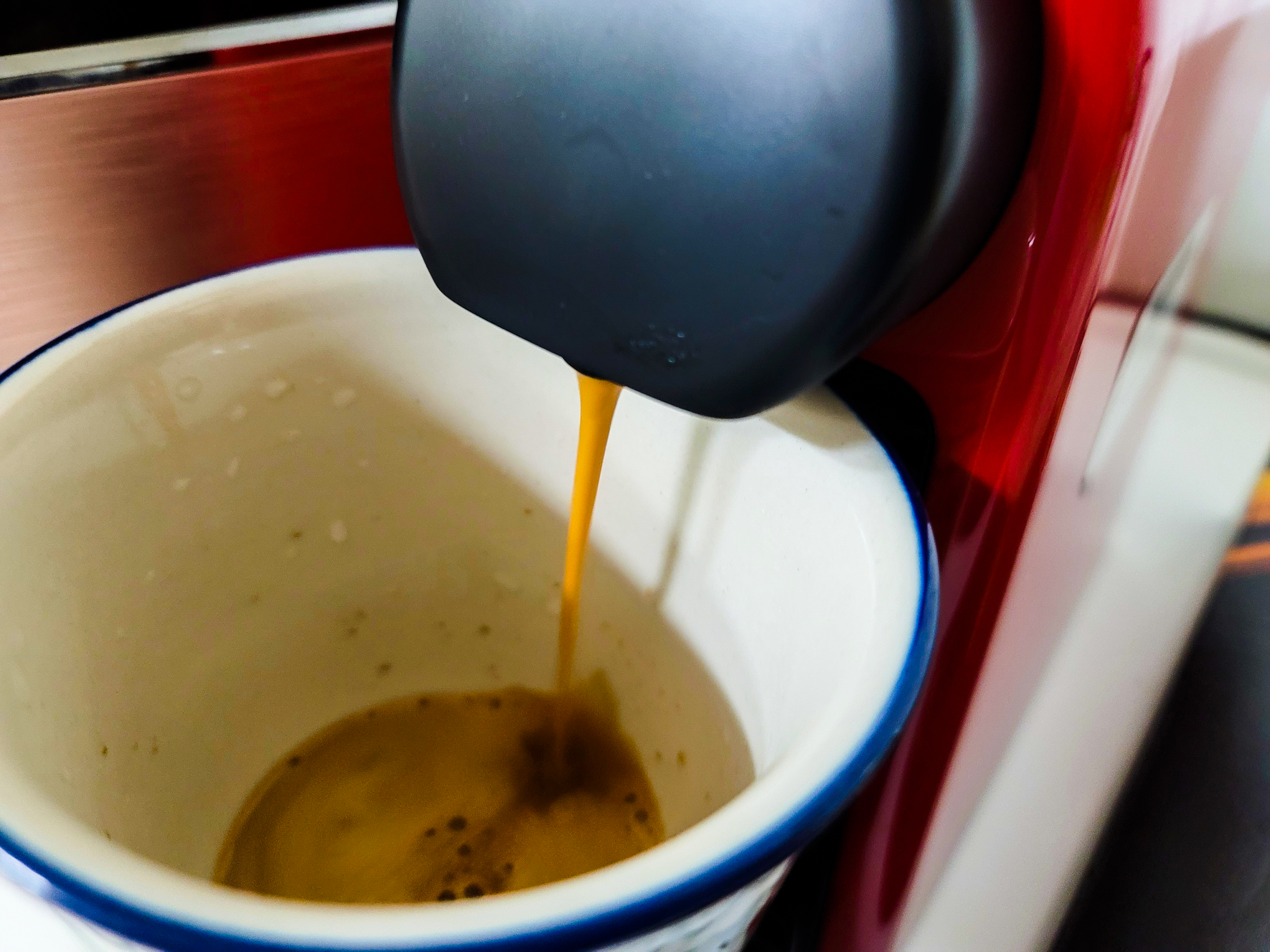 커피 캡슐에 적당한 물양(큰잔 또는 작은잔) 으로 커피를 내린뒤