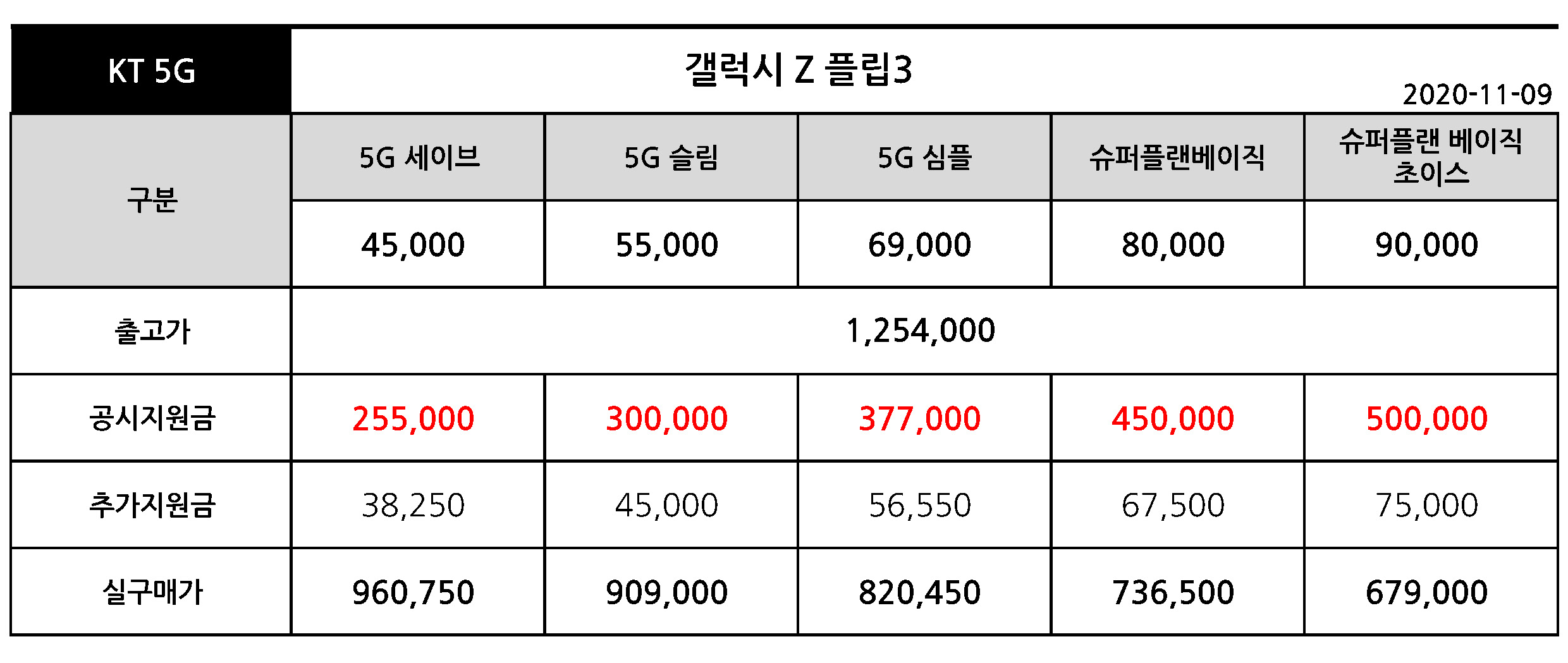 11월 9일 갤럭시 Z 플립3 공시지원금 & 실구매가