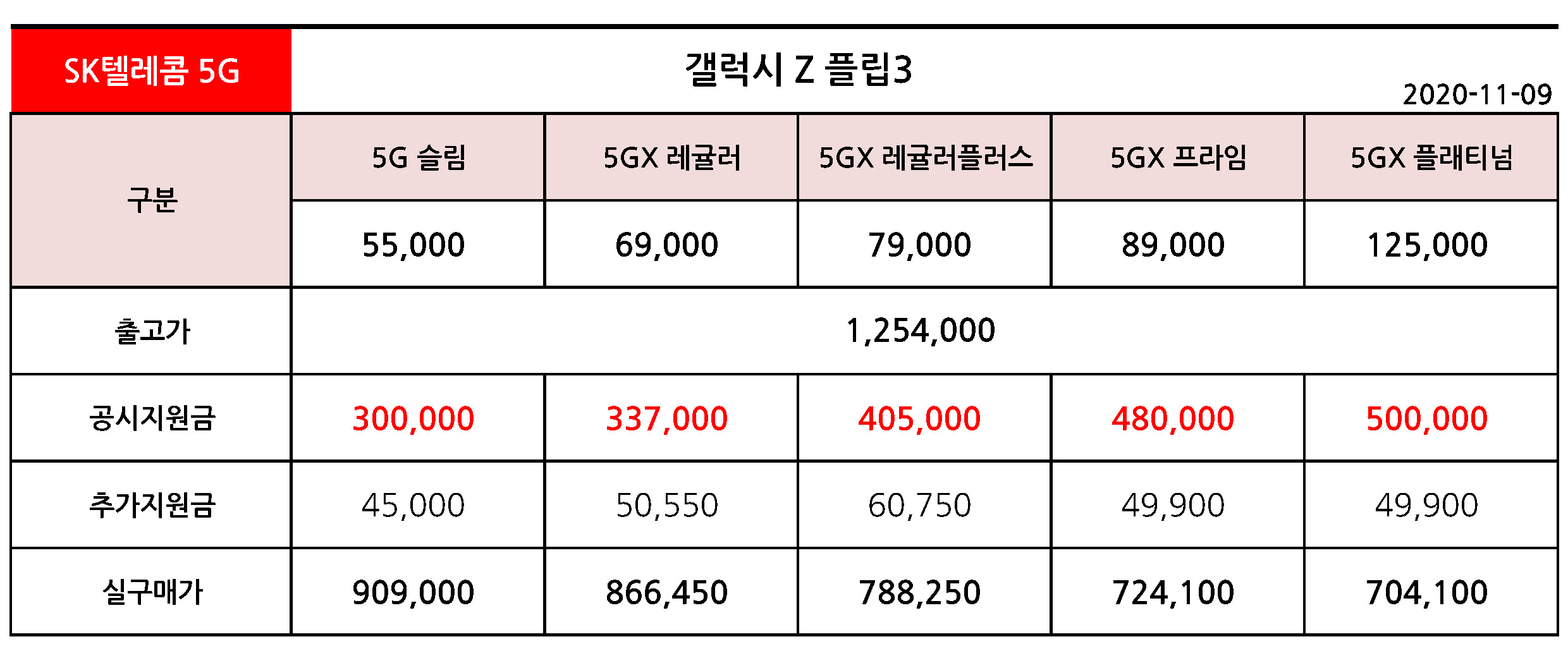 11월 9일 갤럭시 Z 플립3 공시지원금 & 실구매가