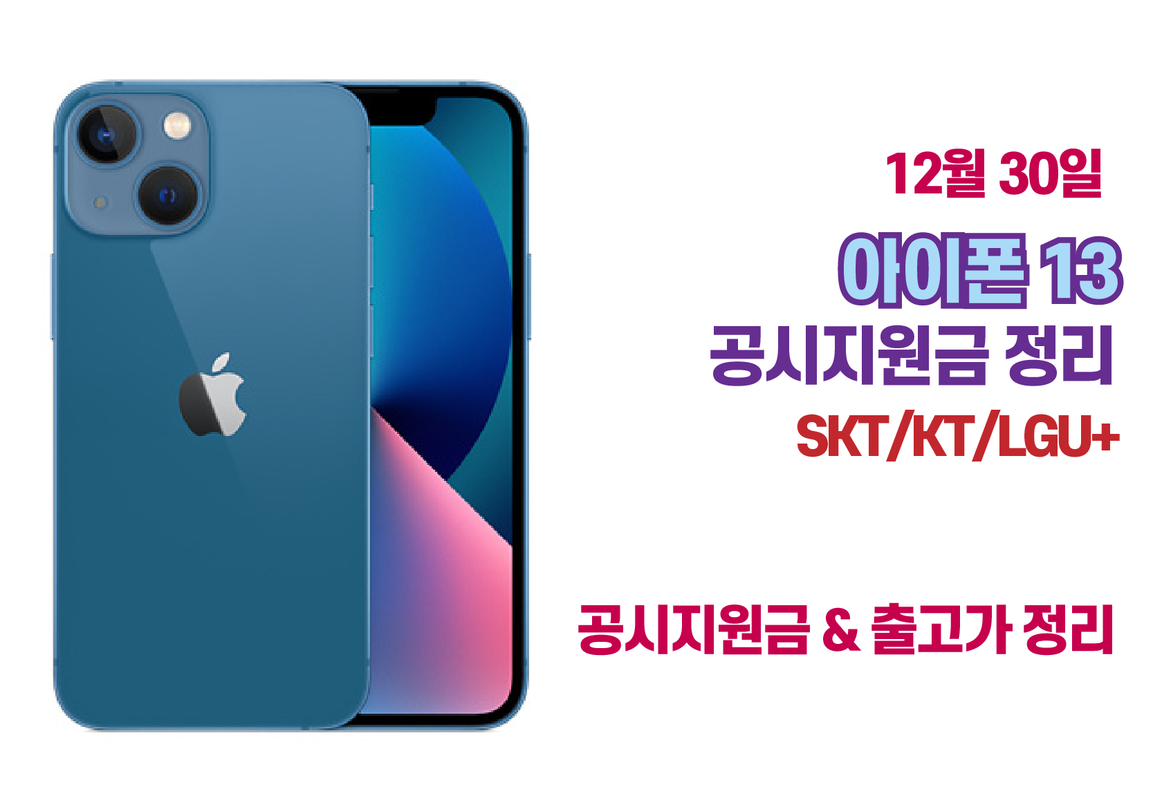 아이폰 13 공시지원금 정리 - 12월 30일이후 변경일 까지