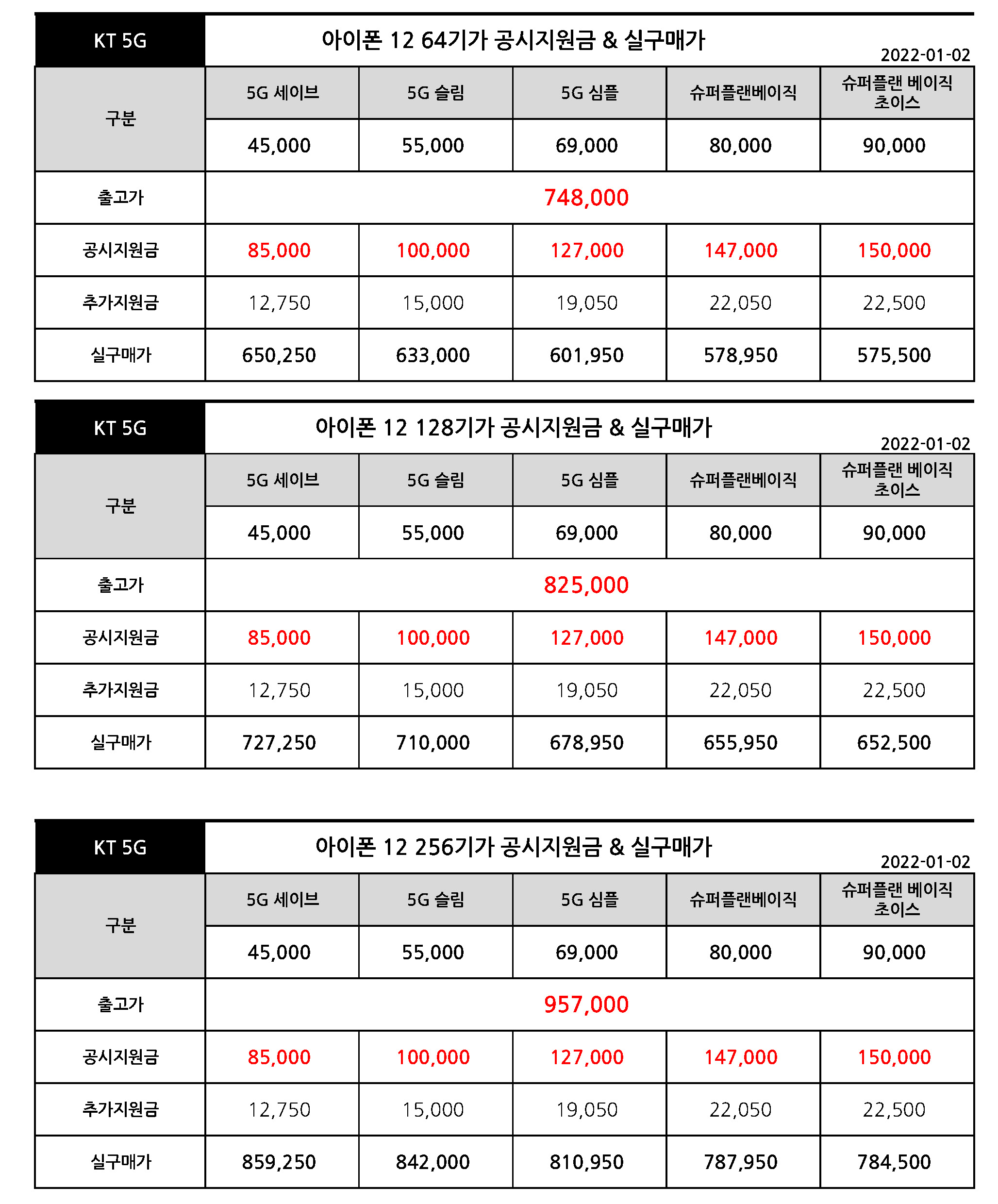 kt 아이폰 12 출고가후 공시지원금 & 실구매가 정리