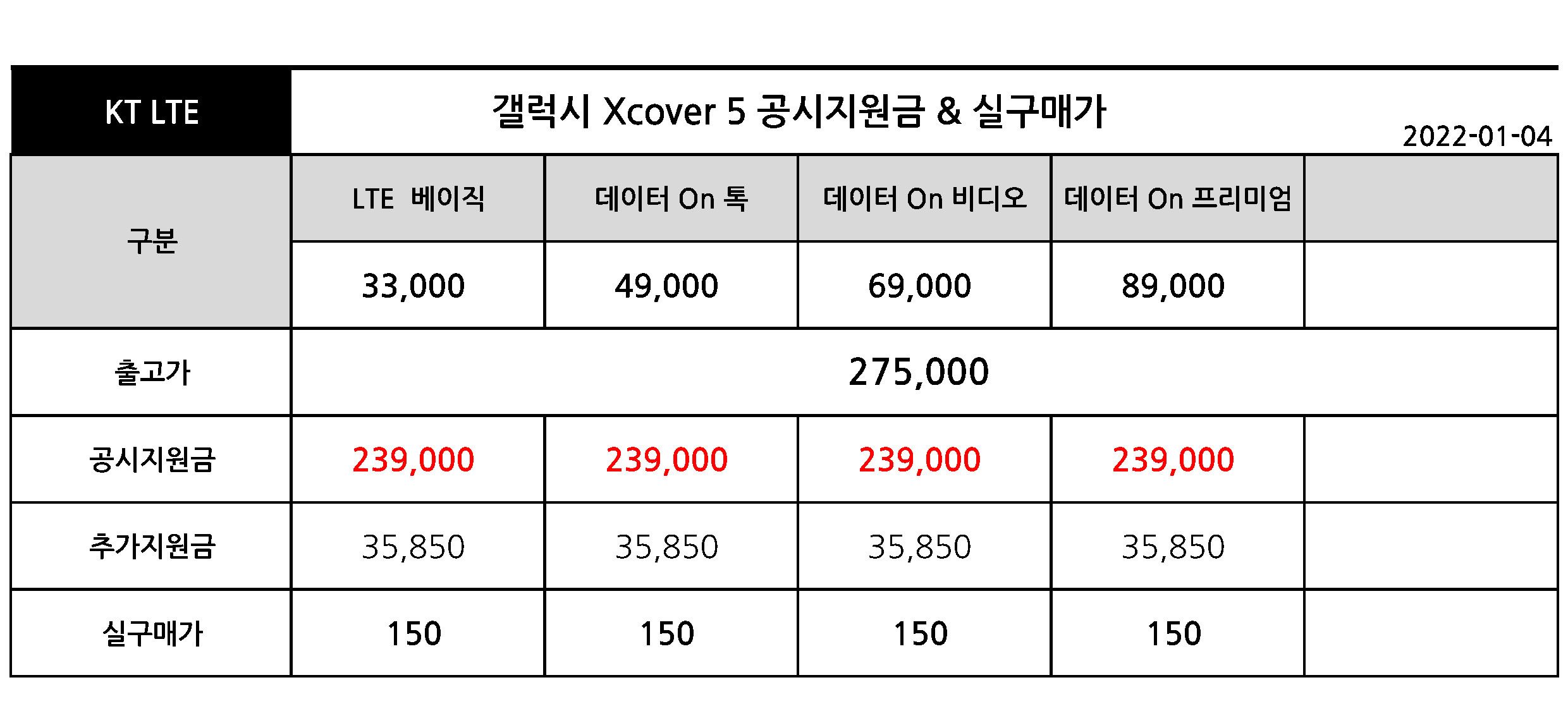 - KT 갤럭시 XCover5 공시지원금 & 실구매가