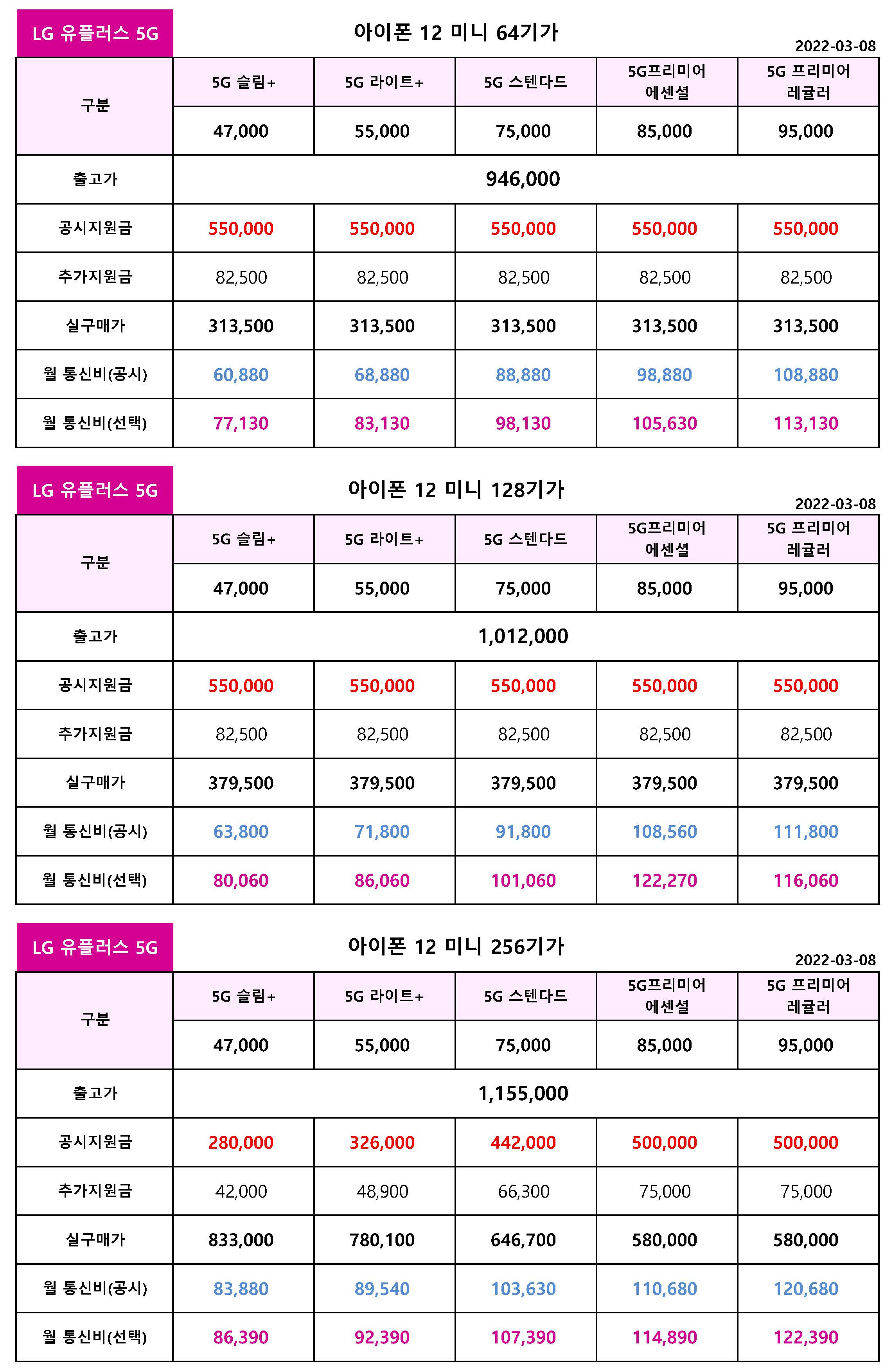3월 8일 아이폰 12 미니 공시지원금 상향 - LG 유플러스