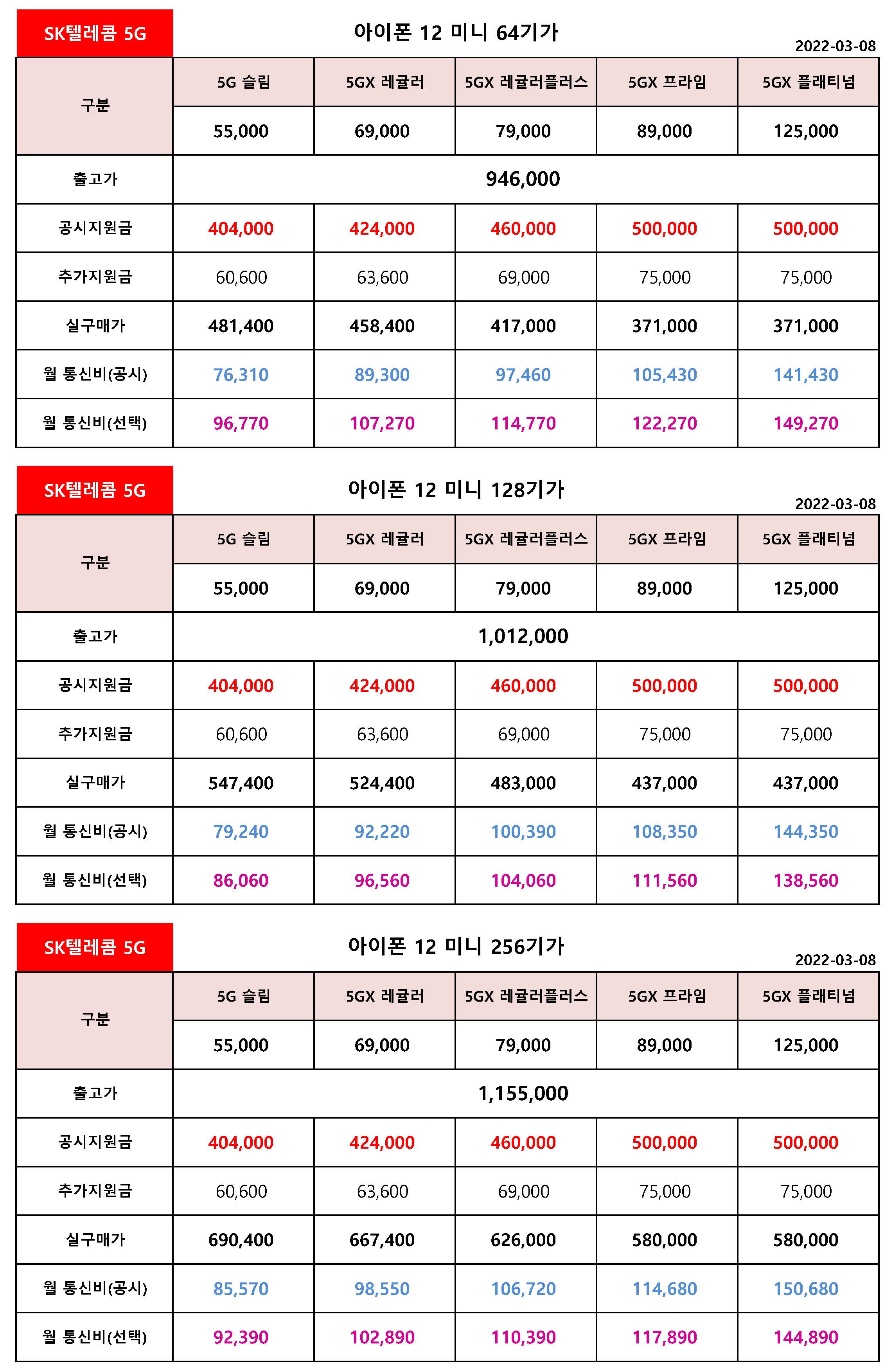 - SK텔레콤 아이폰 12 미니 공시지원금 & 선택약정 월 통신비 정리