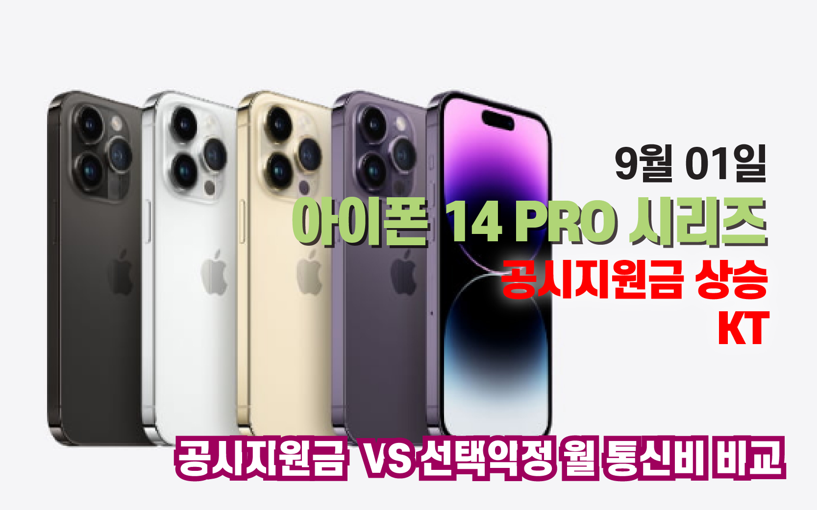 KT 아이폰 14 PRO, 14 PRO MAX 공시지원금 상향 - 23년 9월 1일