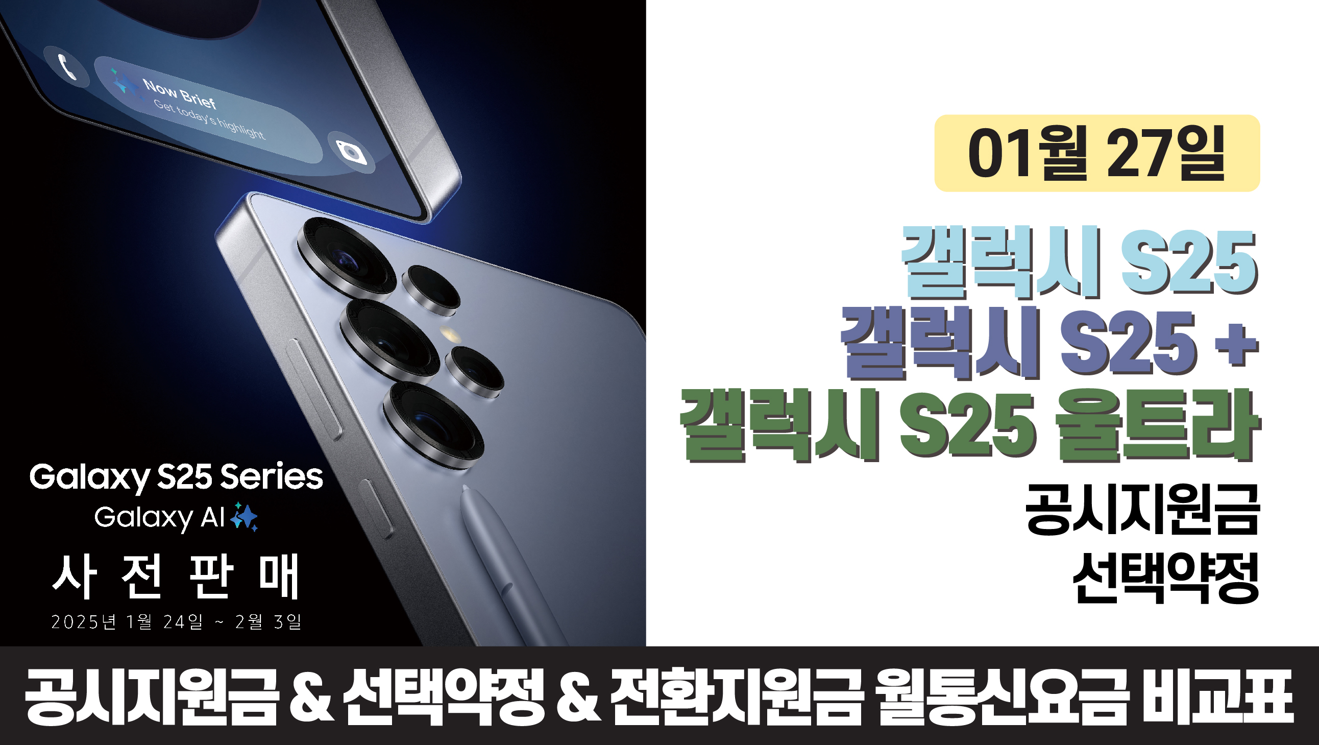 갤럭시 S25, S25+, S25울트라 스펙비교 & 공시지원금 & 선택약정 월 통신비 정리(예상)