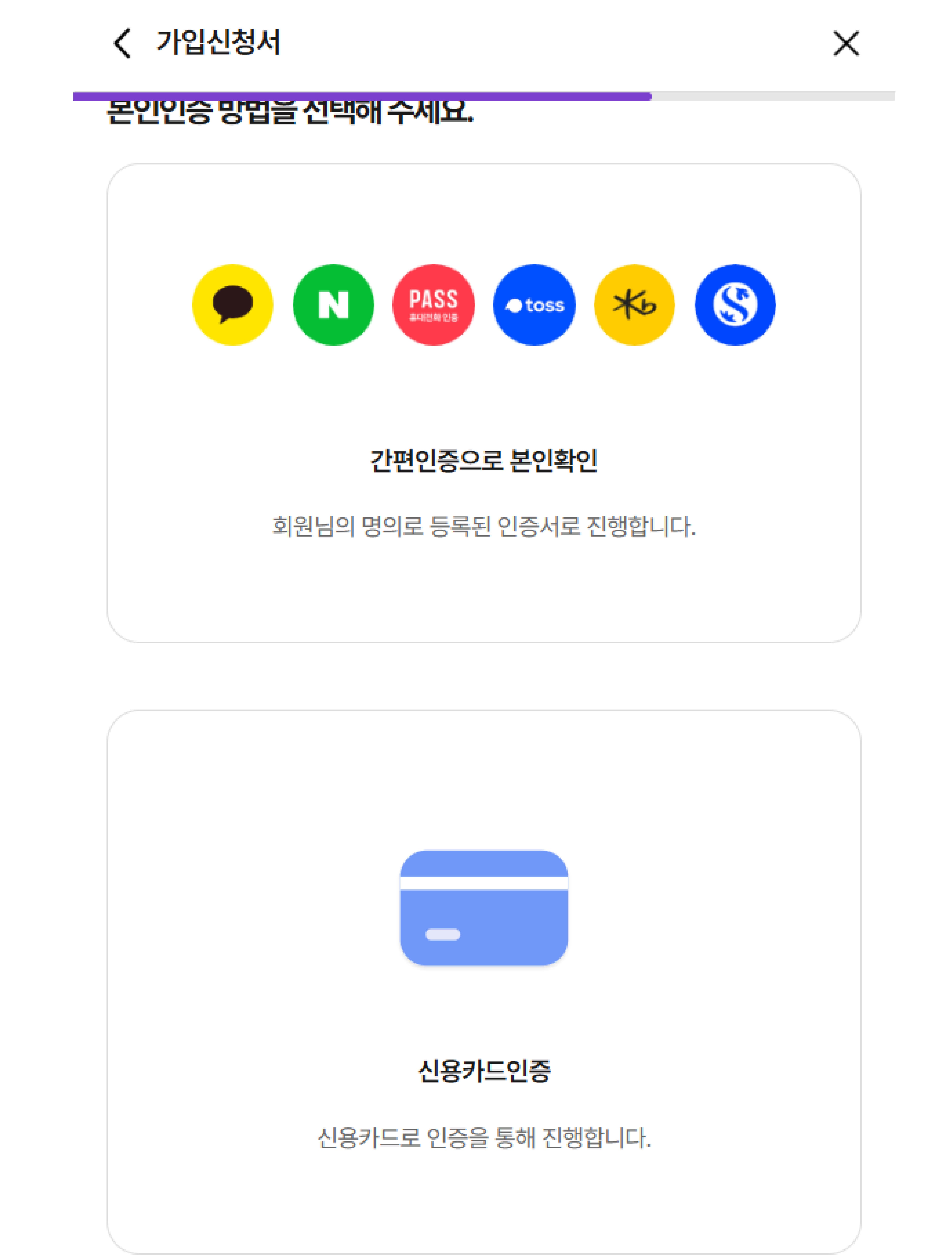 메인폰이 없는 분은 신용카드등의 인증으로 본인인증을 합니다.