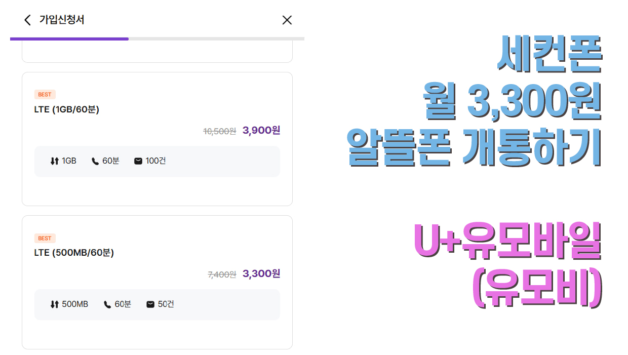 세컨폰 월 3,300원 가성비 알뜰폰 개통하기 (U+유모바일[유모비])