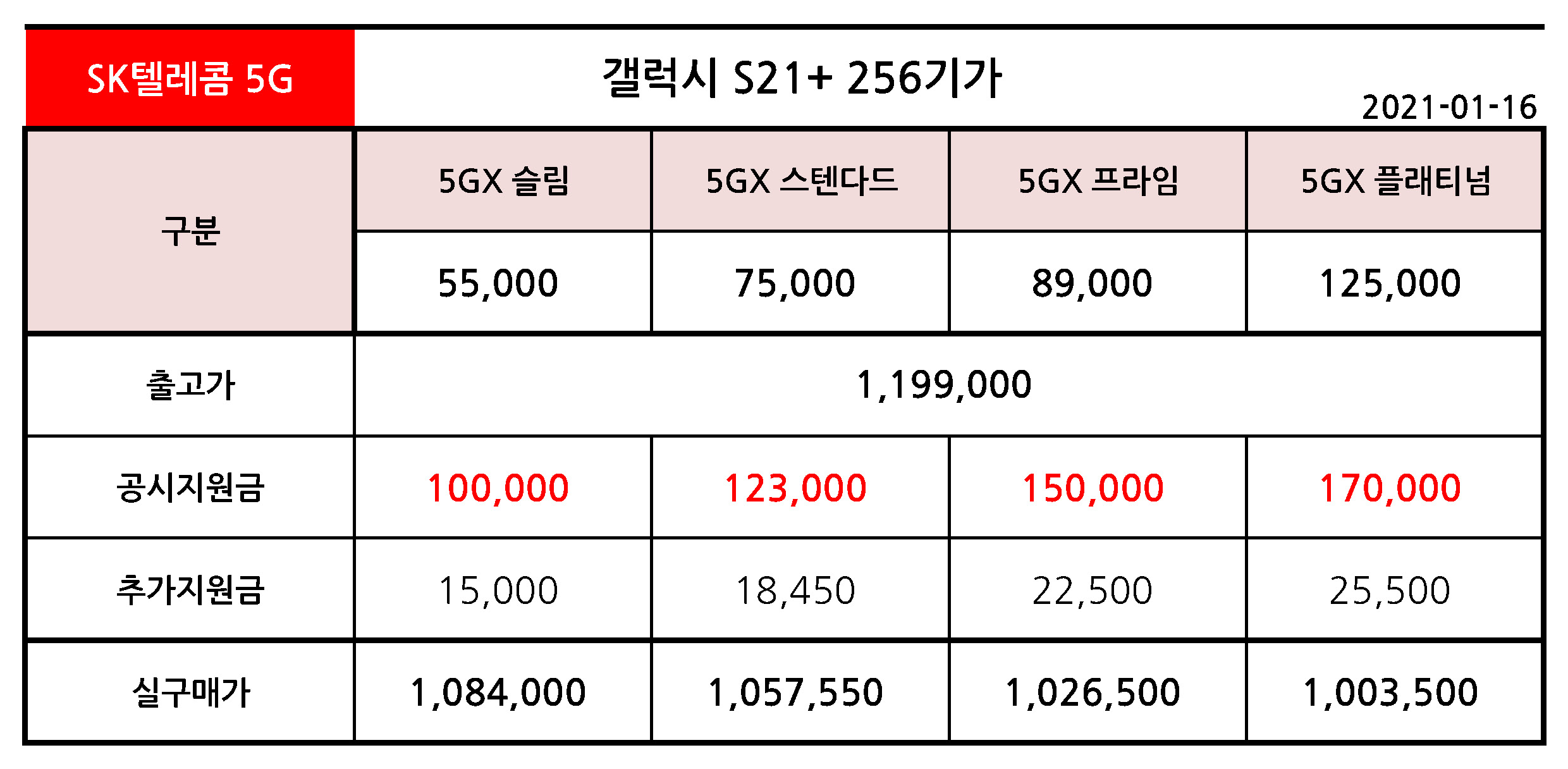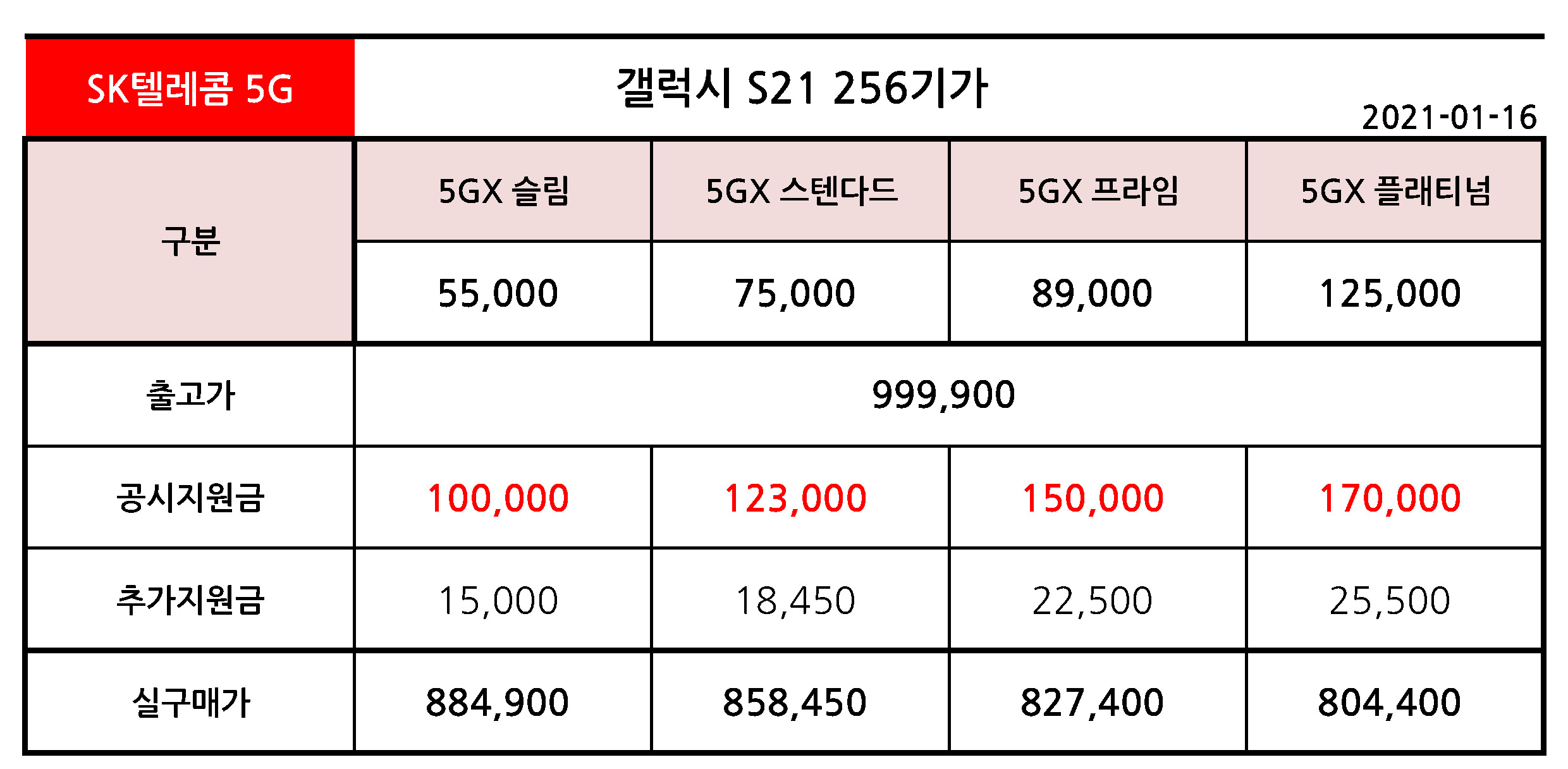 * SK텔레콤 갤럭시 S21 울트라 공시지원금