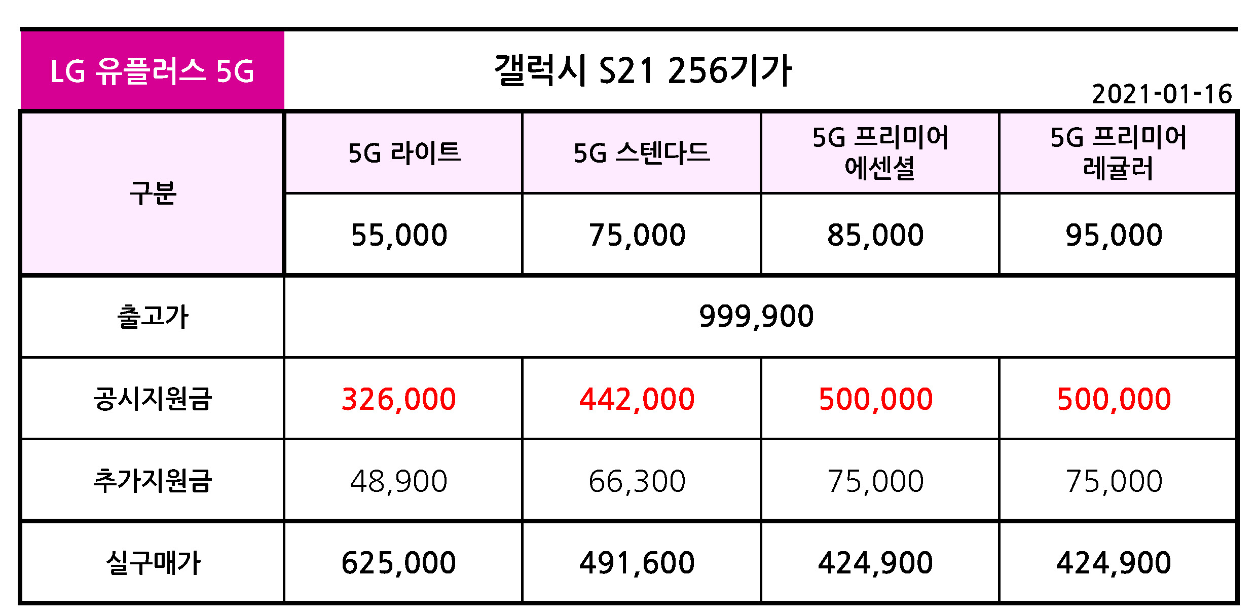 * LG 유플러스 갤럭시 S21 256기가 공시지원금