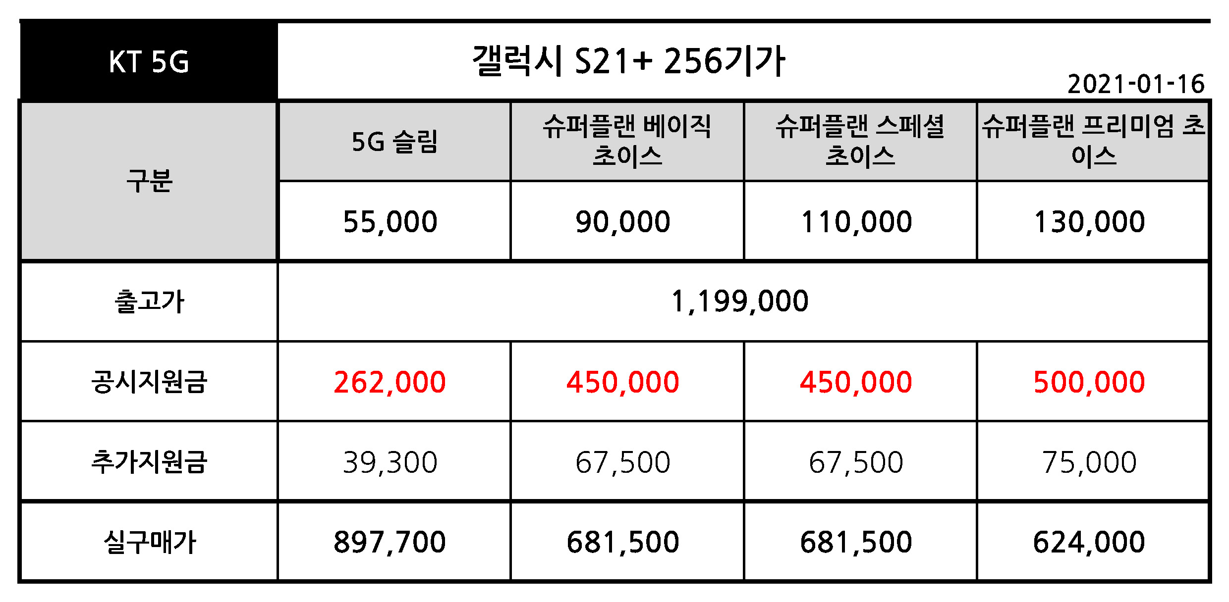 * KT 갤럭시 S21+ 256기가 공시지원금
