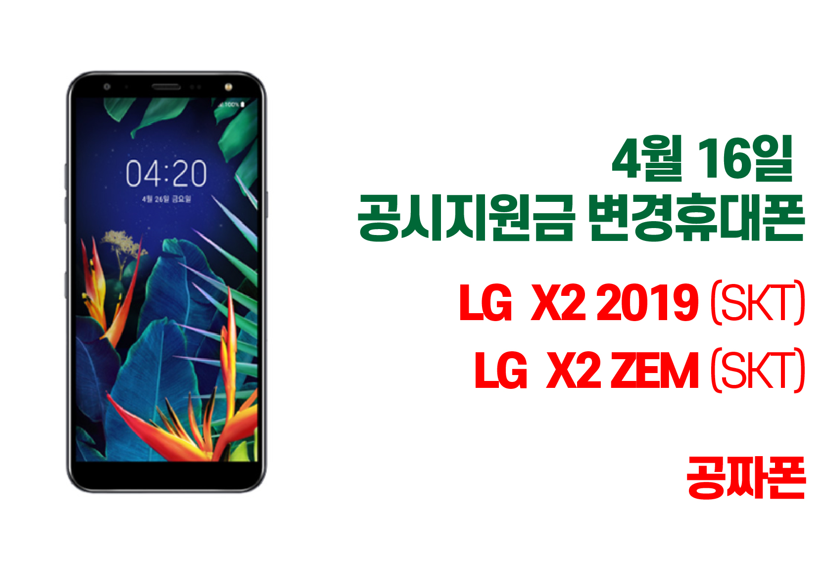 4월 16일 SK텔레콤에서 LG 전자의 저가형 LG X2 2019 의 공시지원금을 출고가 만큼 상향조정하여