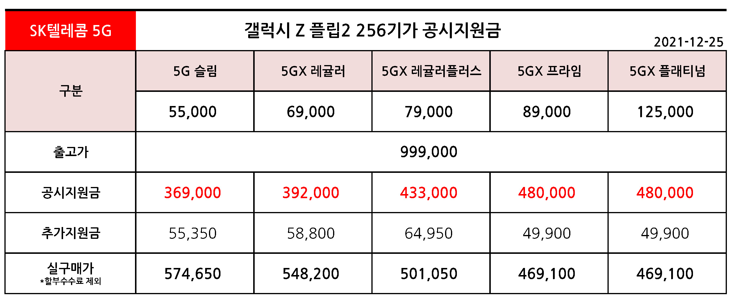 - SK텔레콤 갤럭시 Z 플립2 공시지원금 & 실구매가