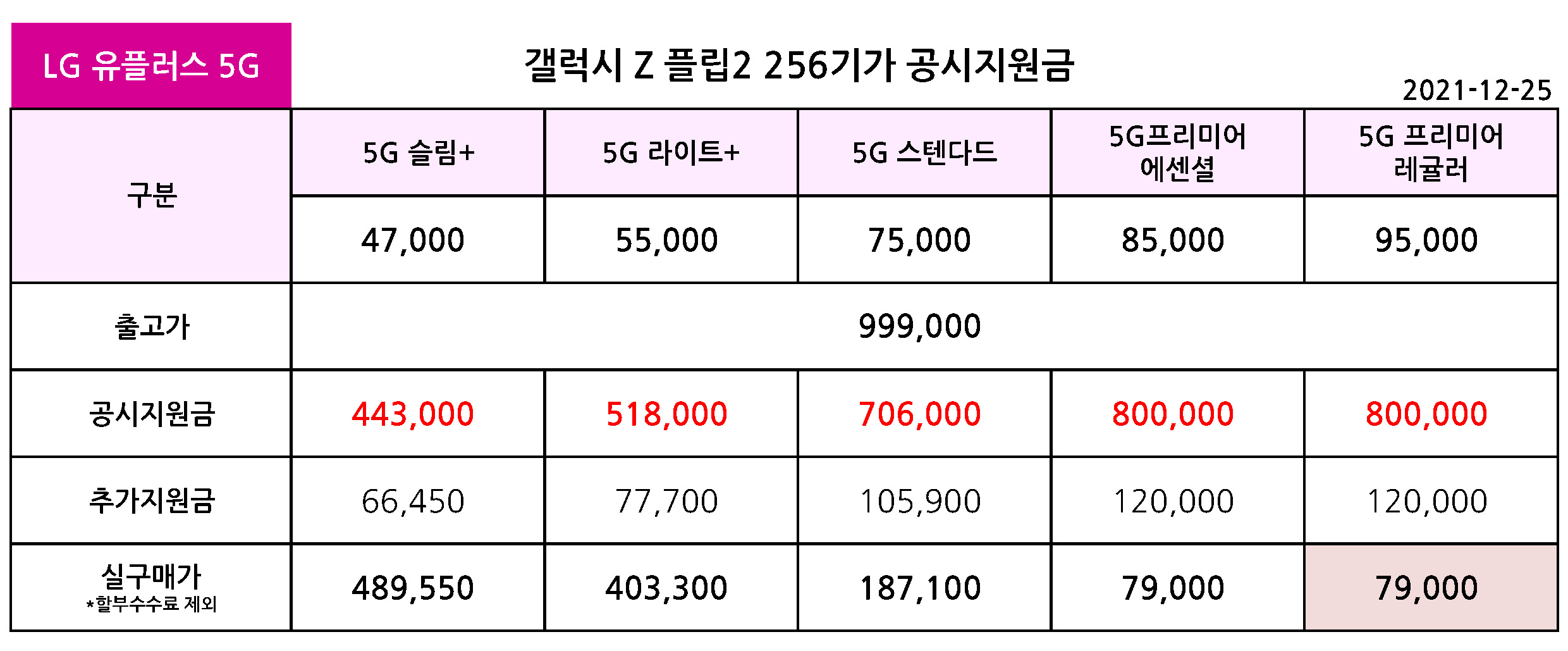 - LG 유플러스 갤럭시 Z 플립2 공시지원금 & 실구매가