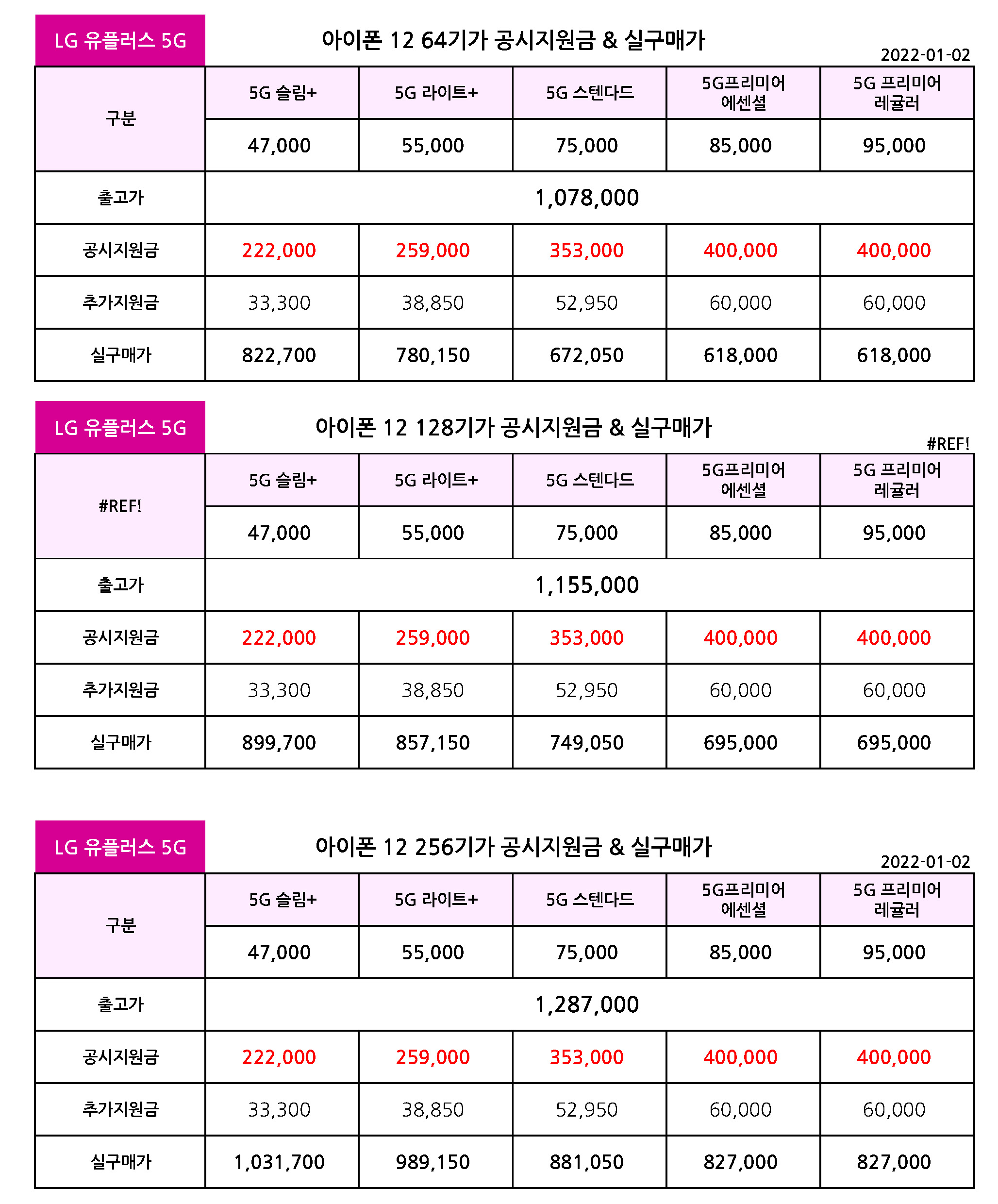 * LG 유플러스 아이폰 12 공시지원금 & 실구매가
